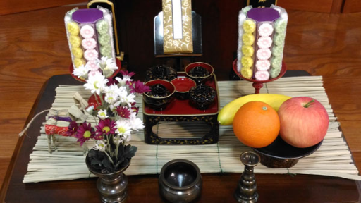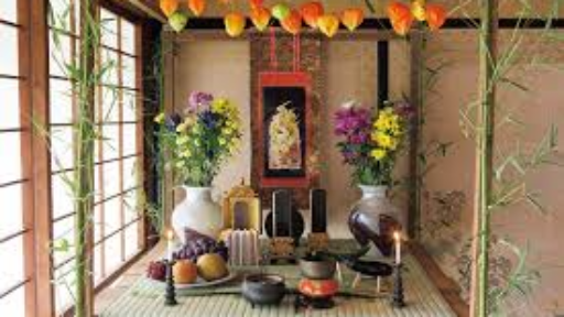 Các thành viên trong gia đình sẽ lập một bàn thờ thần, được gọi là “shoryodana” trong tiếng Nhật, để bày biện các lễ vật khác nhau cho người đã khuất. Đây được xem là một phần trong quá trình chuẩn bị cho sự trở lại của linh hồn những người đã khuất. Trong số những lễ vật này có “shoryo-uma” (những đồ vật có hình những con vật), được làm bằng cách cắm bốn chiếc đũa hoặc tăm vào quả dưa chuột hoặc cà tím. Shoryo-uma có nghĩa là "ngựa thần", thường được chuẩn bị bằng một quả dưa chuột và tượng trưng cho một chú ngựa được cho là sẽ đưa các linh hồn trở về nhanh chóng từ cõi âm. Cà tím có bốn chân tượng trưng cho một con bò, sẽ từ từ đưa các linh hồn trở về đồng thời có thể mang các lễ vật khác nhau do con cháu để lại cho người đã khuất.