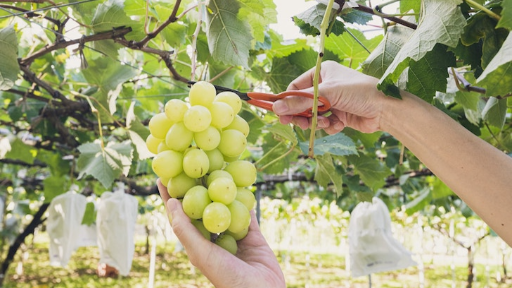 Thời gian săn nho ở Vườn trái cây Hatsusei khá dài (2 tiếng) cho du khách thoải mái trải nghiệm và thưởng thức. Giống nho chủ yếu của vườn là nho không hạt như Buffalo và nho Steuben cực ngọt và thơm. Ngoài ra còn có nho Kyoho thì giới hạn trong 60 phút, tùy theo mùa mà còn có cả nho Tenshu và Ryuho.