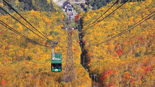 Khi các bạn đi từ suối nước nóng Sounkyo bạn có thể sử dụng cáp treo để đi đến tầng 7 núi Kurodake, vừa di chuyển lên cao vừa ngắm lá đỏ. Từ nơi đáp xuống của cáp treo cho đến đỉnh núi phải đi bộ mất tầm 1h. Không chỉ được tận mắt ngắm lá đỏ mà bạn còn có thể đi bộ một chút luyện tập và cảm nhận thiên nhiên hùng vĩ với cự li khá gần nên cảm giác sẽ rất tuyệt đấy.