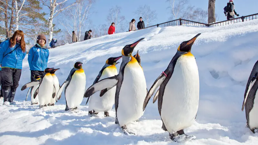 Bạn có thể ngắm nhìn các loại động vật năng động hơn vào mùa đông trong sở thú này. Đây là sở thú có nhiều người viếng thăm nhất Nhật Bản. Điểm thu hút nhất của Sở thú Asahiyama vào mùa đông là diễu hành 500m của các chú chim cánh cụt khoảng 30 phút. Còn có các loại thú khác như gấu và hải cẩu. Đây là điểm đến được cả trẻ em và người lớn ưa chuộng.
