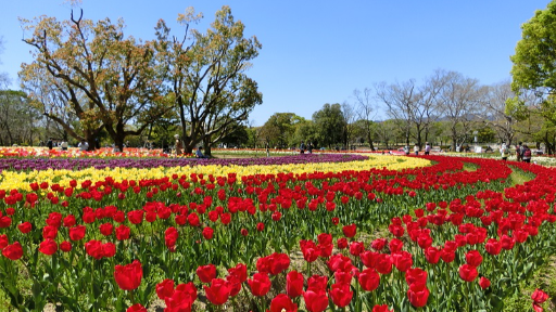 Công viên EXPO là một địa điểm nổi tiếng để ngắm mọi loại hoa trong cả 4 mùa. Mùa xuân là mùa trăm hoa đua nở tại công viên EXPO. Một ngày sẽ là quá ít để có thể ngắm hết mọi vườn hoa đang rực rỡ khoe sắc tại công viên EXPO. Thời điểm tuyệt vời để ngắm hoa tulip cùng với hoa anh đào là cuối tuần đầu tháng 4. Bạn có thể ngắm hoa tulip cho tới tận đầu tháng 5 đợt Goldweek.