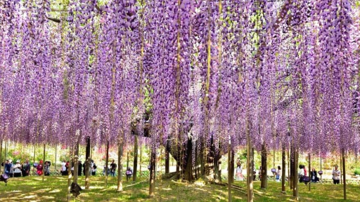 Nằm cách Tokyo khoảng hai giờ, Công viên hoa Ashikaga là nơi tổ chức Lễ hội Hoa Tử Đằng Diệu Kỳ. Lễ hội hoa kỳ diệu này là một trong 10 điểm đến mơ ước hàng đầu quốc tế của CNN – và chúng ta có thể hiểu tại sao. Công viên rộng 94.000 mét vuông có hơn 350 cây Tử Đằng trải rộng trên một tấm lưới có kích thước 600 tấm chiếu. Trong khu vườn hoa tử đằng rộng 92.000 m2, có khoảng hơn 350 cây hoa tử đằng với nhiều chủng loại, bao gồm hơn cây “Đại Tử đằng” 150 tuổi kéo dài trong không gian rộng 1.000 m2, và hai đường hầm hoa dài 80m với hai màu trắng và vàng.