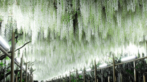 Nổi tiếng với đường hầm hoa tử đằng dài 100m, hoa được kết thành một mái vòm khổng lồ với đường gầm dài. Khiến hoa tử đằng nơi đây mang một nét đẹp rất riêng. Hoa được trồng theo tầng, với các màu sắc xen kẽ lẫn nhau. Ngoài chiêm ngưỡng hoa khi đi trong đường hầm, bạn còn có thể quan sát hoa từ vị trí trên cao nữa đó, từ trên cao nhìn xuống là một thảm hoa xinh đẹp trải dài. Đây là một nơi không thể không đến khi hoa tử đằng nở.