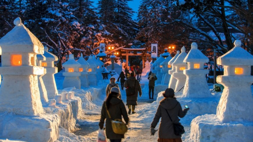 Hoạt động: Tạo hình các ngôi đền tuyết (kamakura), thắp đèn, và các hoạt động truyền thống như ăn mochi.